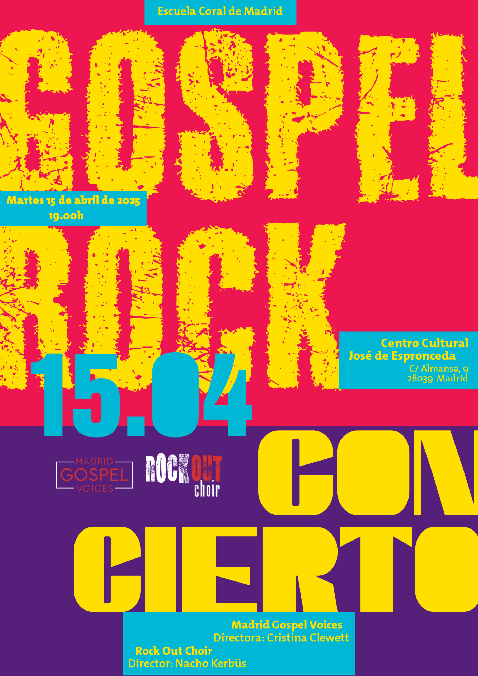 Concierto conjunto de Gospel Voices Madrid y Rock Out Choir📅 Martes 15 de abril, 19:00 h📍 Centro Cultural...