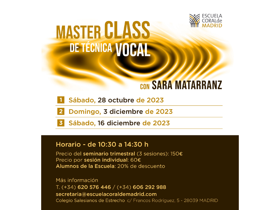 La Master Class de Técnica Vocal que imparte Sara Matarranz, catedrática de la Escuela Superior de Canto de...